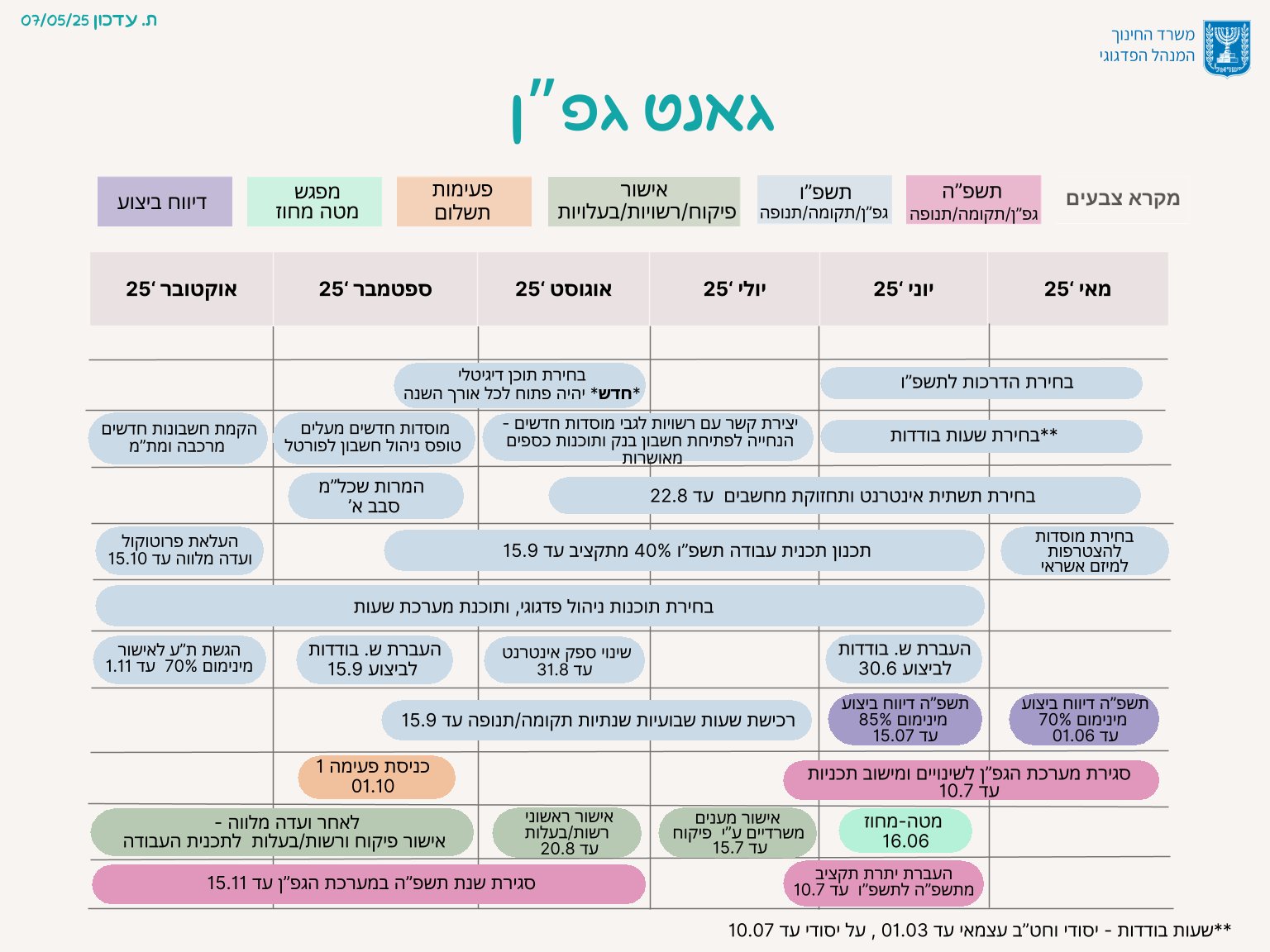 הגאנט של גפ״ן, שמחולק מדי שנה למנהלי בתי ספר, נראה על הנייר כמו כלי ניהולי של מערכת. אבל מאחורי הצבעים, החצים והאחוזים, הוא בעצם מפה סמויה של הסיכונים וההזדמנויות של ספקים. הוא לא מספר רק מתי מדווחים או מתי מאשרים, אלא מתי נכון למכור, מתי מסוכן להתחייב, מתי צריך לעצור פעילות למרות שיש רצון, ומתי דווקא כדאי להאיץ גם אם נדמה שעוד לא הגיע הזמן.