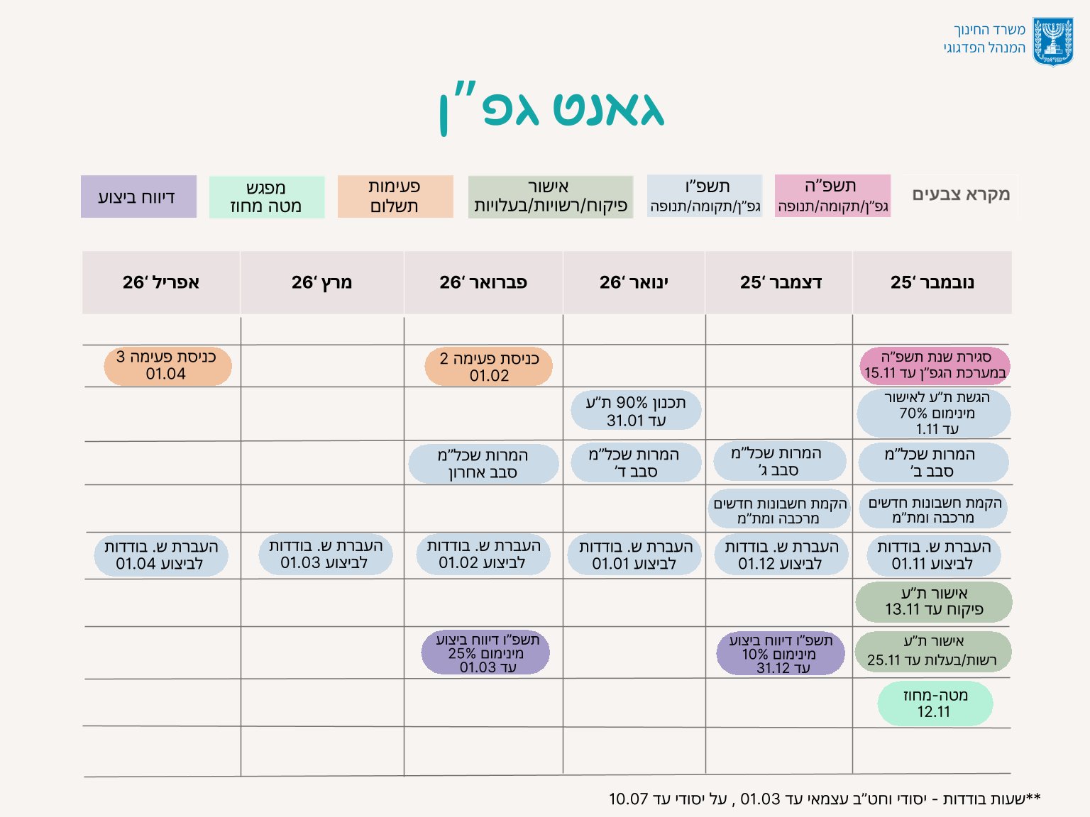 טבלה זו מתייחסת לשנת הלימודים תשפ"ו. אבל העקרונות ולוחות הזמנים שבה נכונים לכל שנה